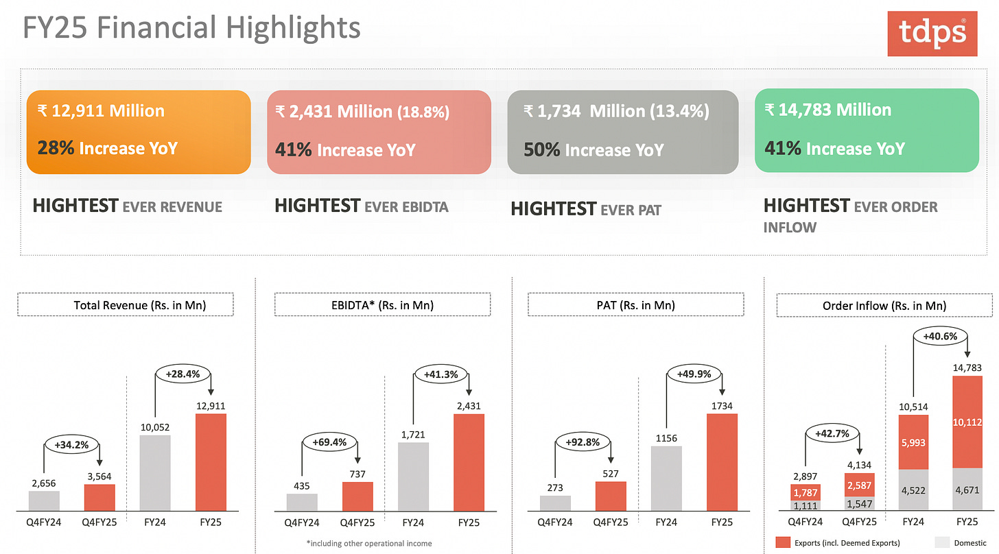 Over 65 percent of TDPS’s revenue now comes from exports. This de-risks its dependence on any one geography and gives it leverage to tap into the global infrastructure and energy upcycle.