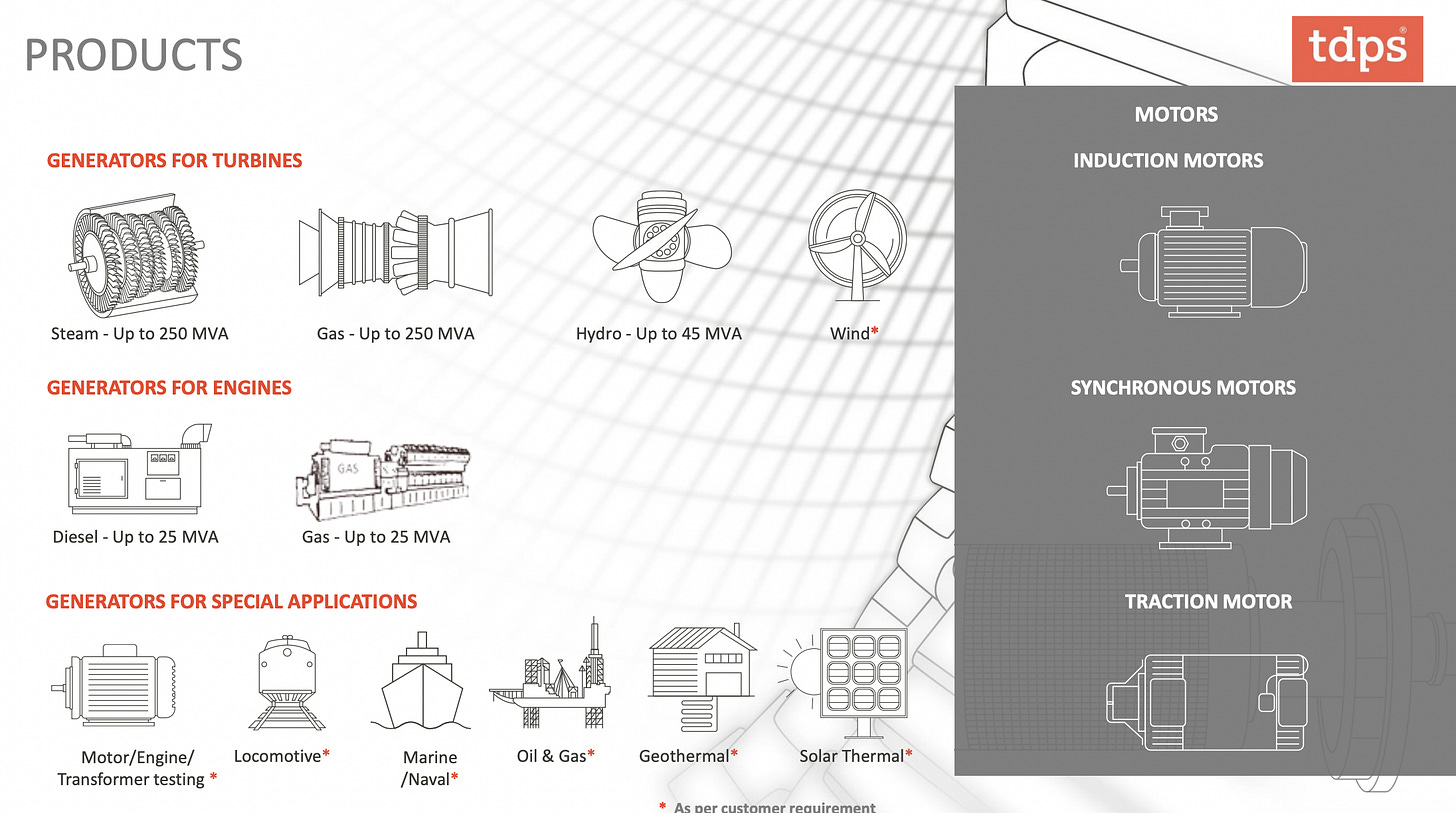 TDPS competes with multinational behemoths like GE Vernova, Mitsubishi, Andritz, and Siemens in large turbine-generator packages. But the space TDPS plays in — customised, mid-sized generator sets — often flies under their radar.